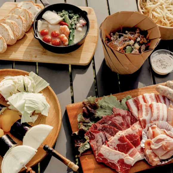 贅沢なお肉を中心としたご当地グランピングBBQをご用意しております。焼くだけ温めるだけの手間いらずで地元食材を使ったBBQが楽しめます。BBQスタイルで豪快にグリルしてお楽しみください。